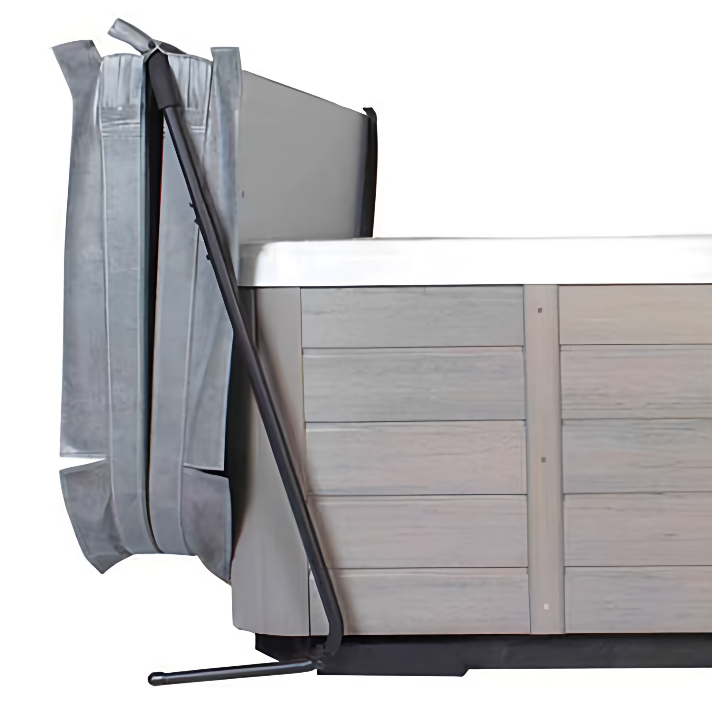 The Cover Rock-It is a superior cover lift that offers a simplistic design. It fits most of today’s spas up to 96″, all the while offering ease of use and affordability. The Cover Rock-It slides effortlessly behind the spa enabling a view from all sides.